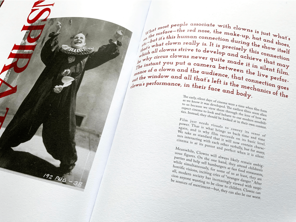 The colour scheme for this project was chosen to pay homage to the historical use of red in early cinema production to create a sense of suspense. Additionally, red is widely recognised as the colour of clown noses or the iconic red balloon from “IT.”
